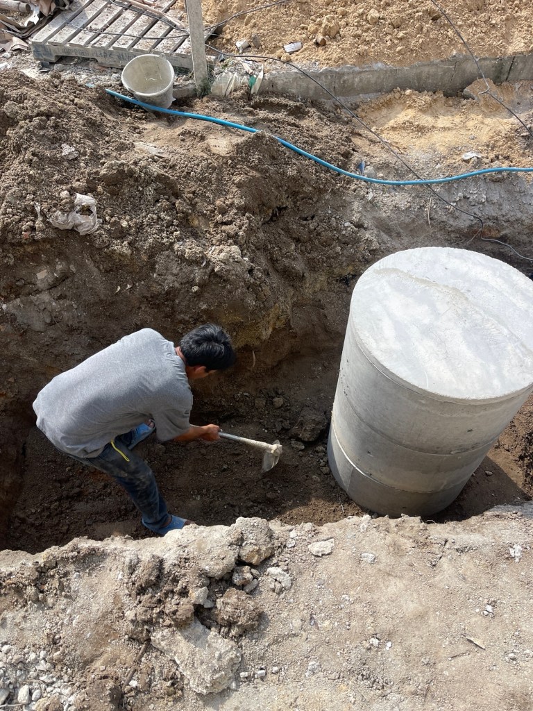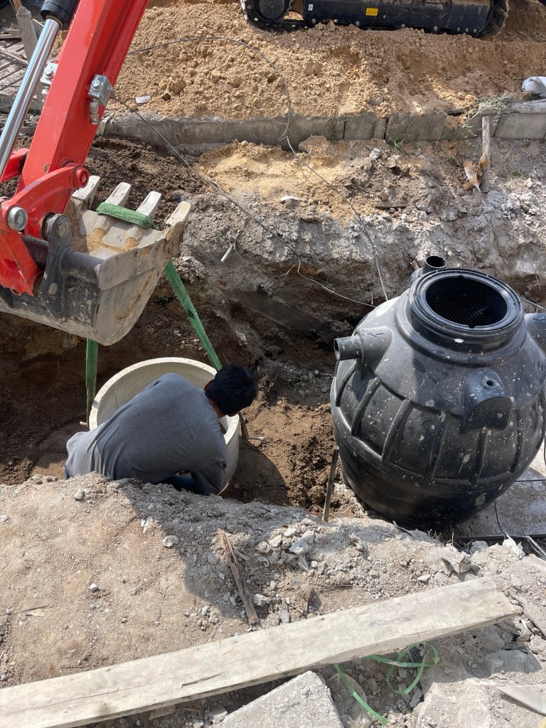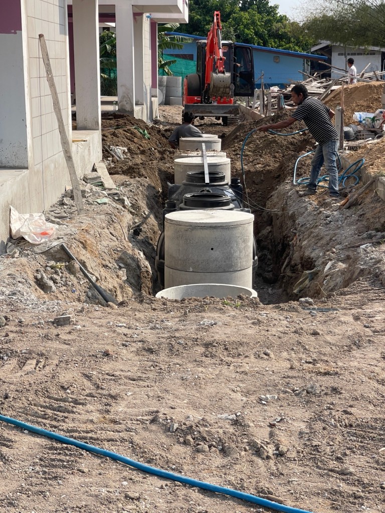 ทีมงานรถแมคโคร+ทีมช่าง เข้าติดตั้งถังแซ็ก และบ่อซึม อาคารหอพักครู โรงเรียนบ้านหนองยาว ต.เขาใหญ่ อ.ชะอำ จ.เพชรบุรี