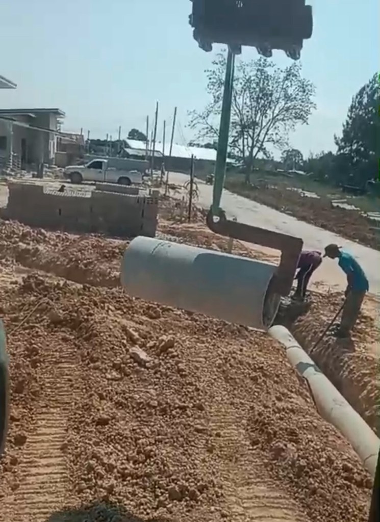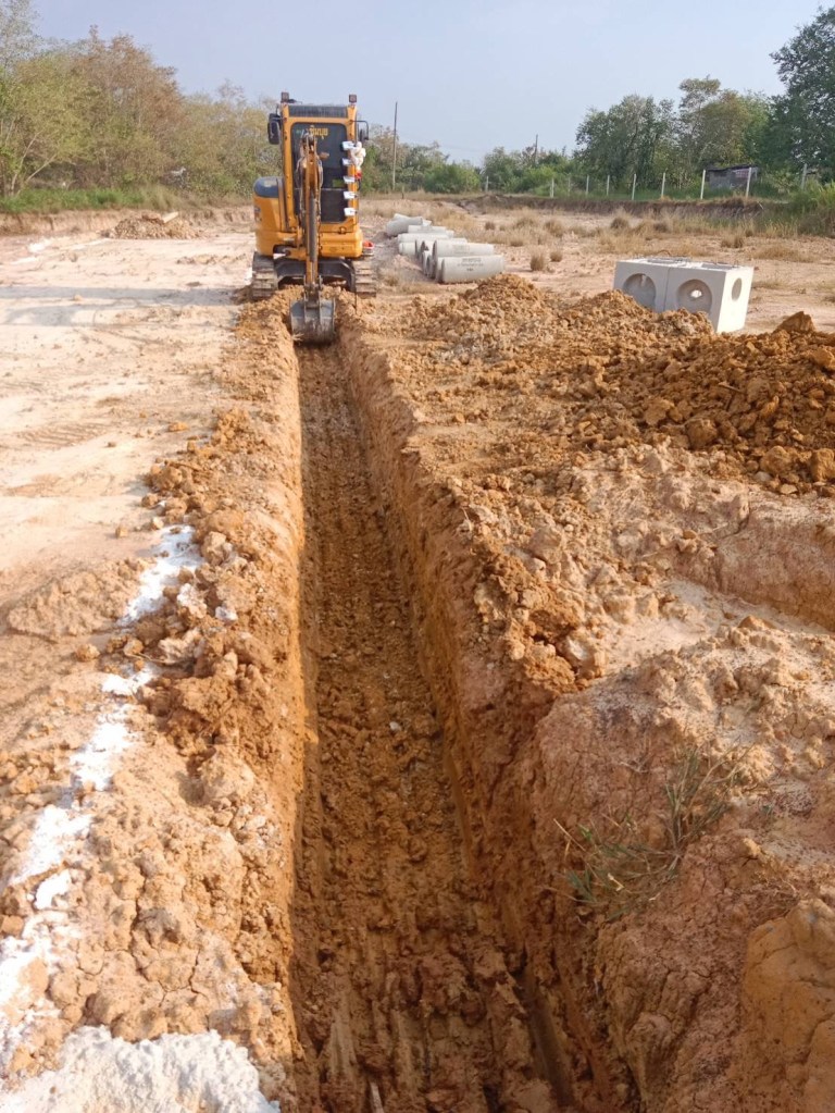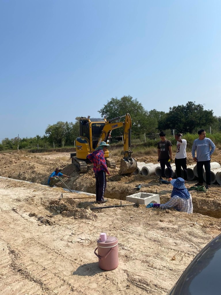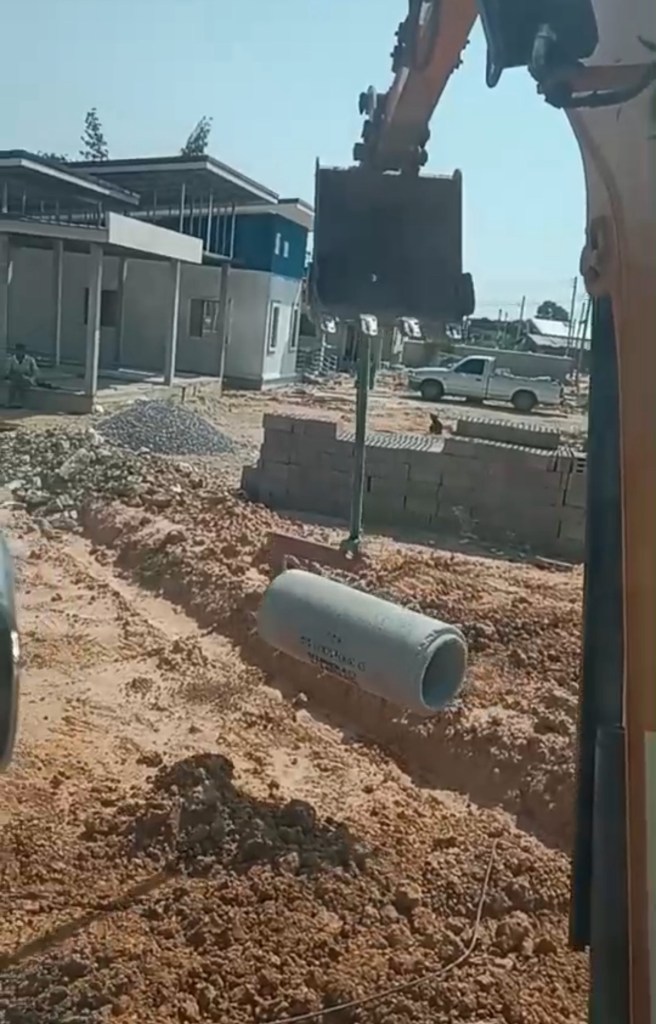 โครงการขึ้นใหม่ โดยวางระบบท่อน้ำทิ้งแนวถนนคอนกรีต ตามมาตรฐานของโครงการจัดสรร ใช้รถขุดขนาด 3.5ตัน เป็นเวลา 3 วัน
