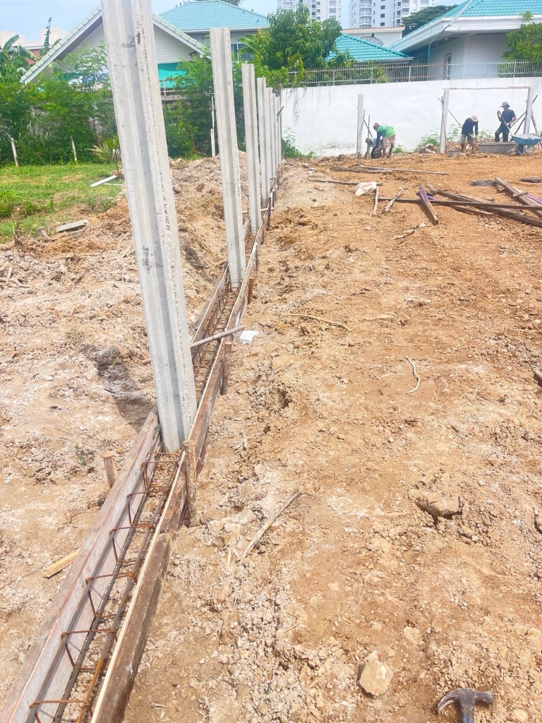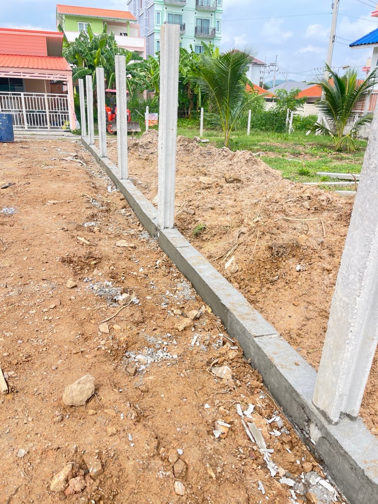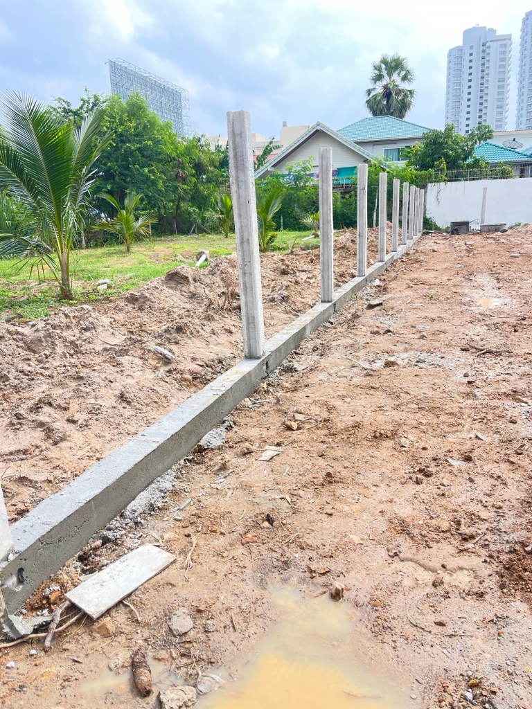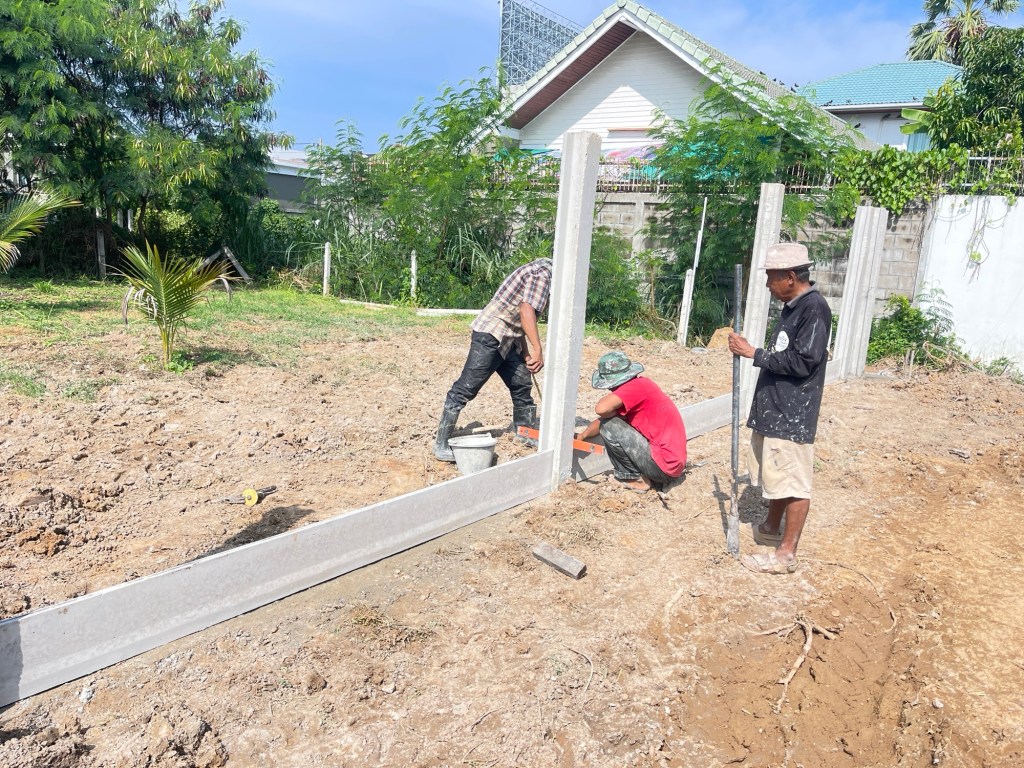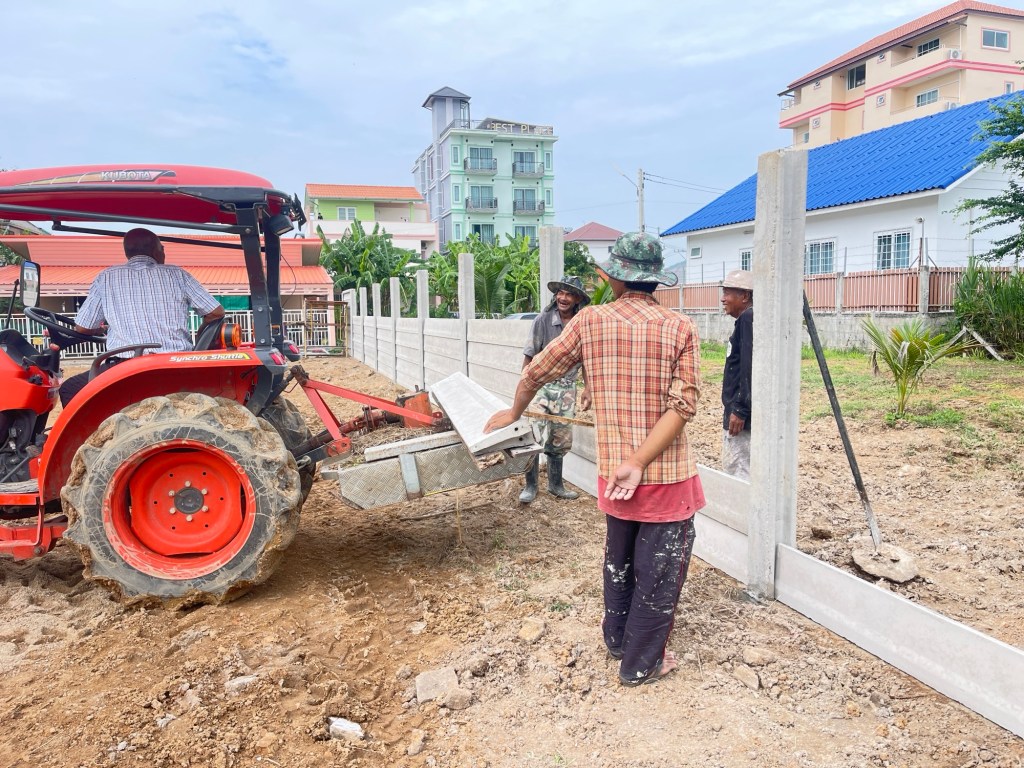ลูกค้าล้อมรั้วด้วย รั้วคอนกรีตแผ่นสำเร็จรูป ด้านหน้าเป็นรั้วลวดหนาม เพื่อป้องกันการบุกรุกและแอบทิ้งขยะเข้ามาในที่
