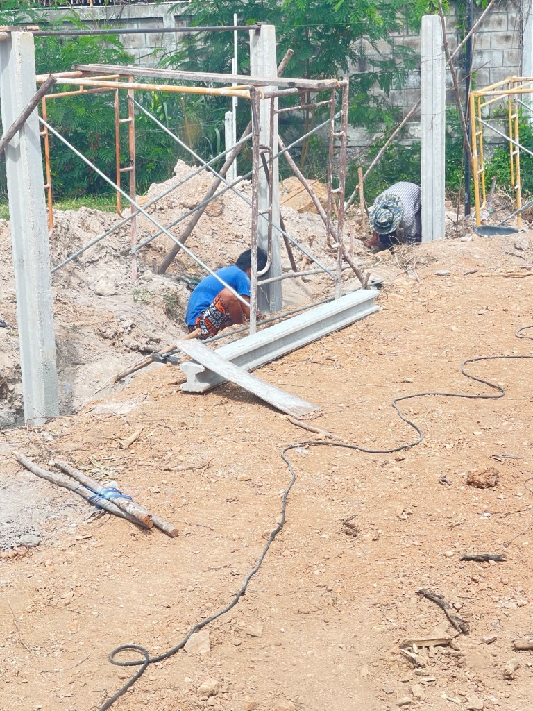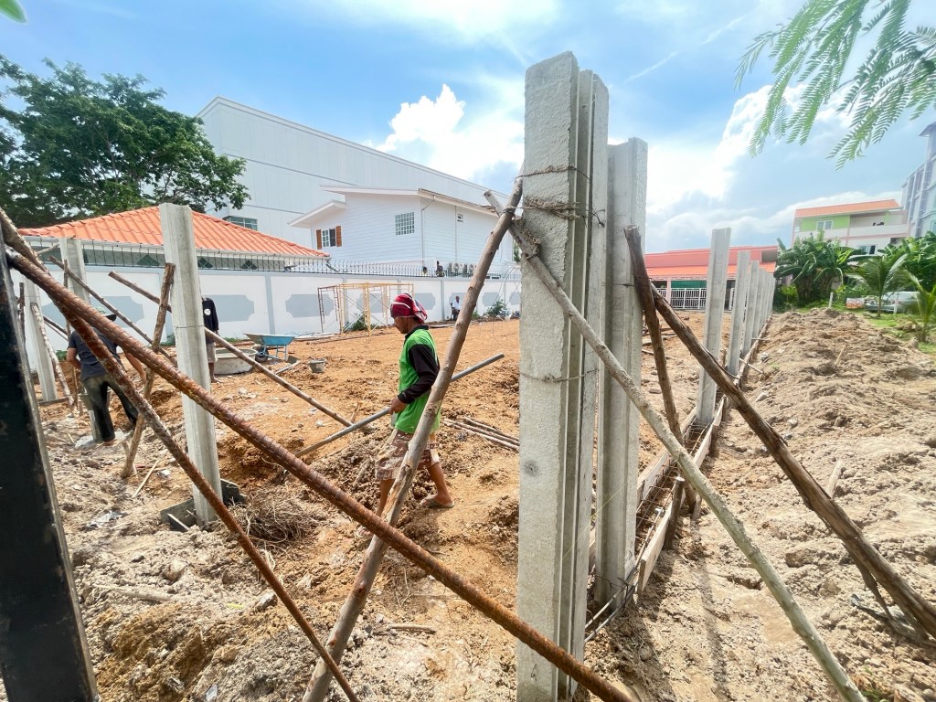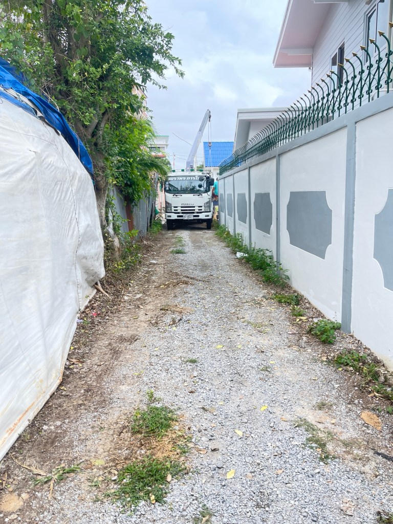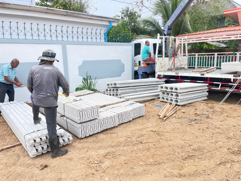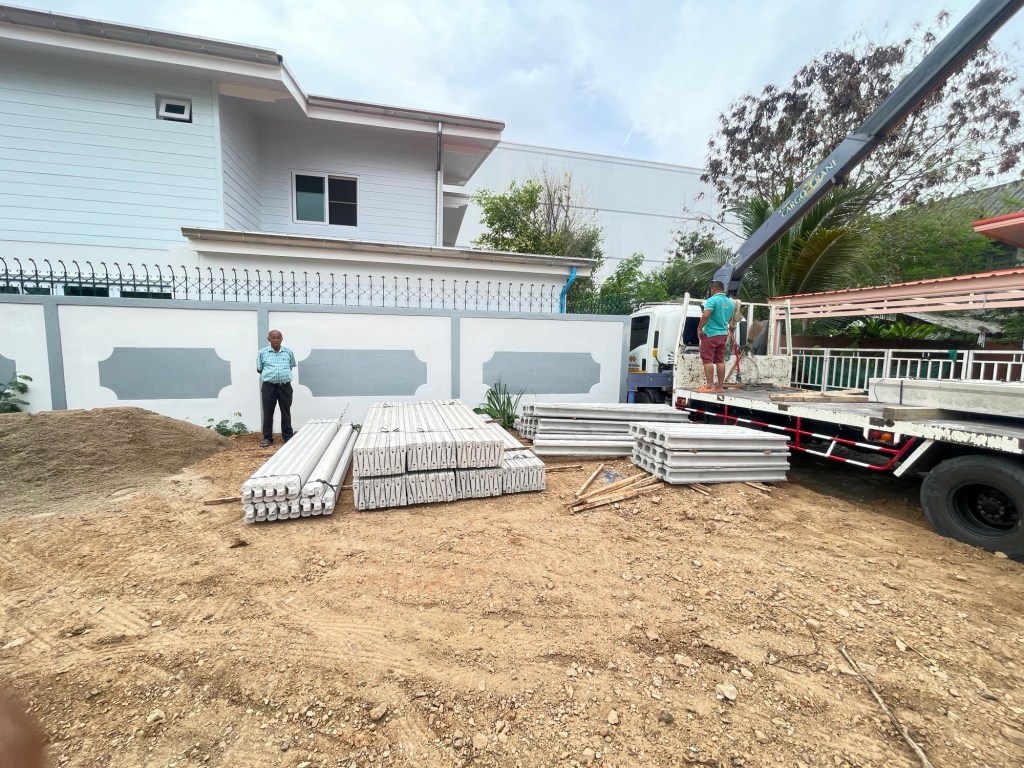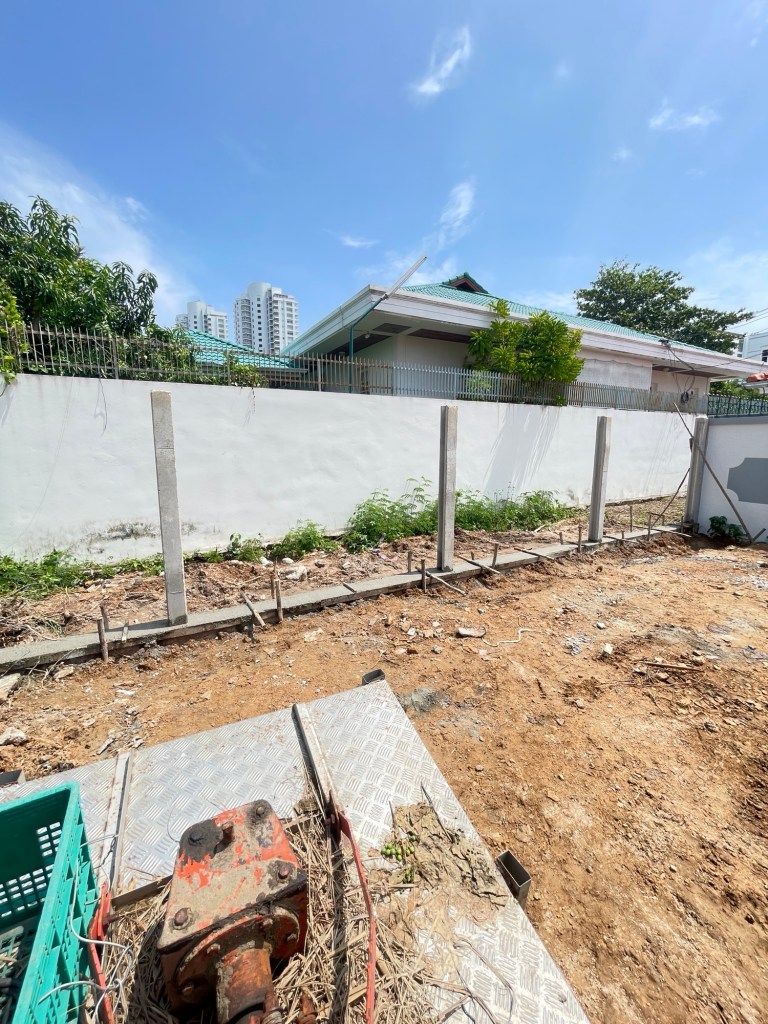 ลูกค้าล้อมรั้วด้วย รั้วคอนกรีตแผ่นสำเร็จรูป ด้านหน้าเป็นรั้วลวดหนาม เพื่อป้องกันการบุกรุกและแอบทิ้งขยะเข้ามาในที่