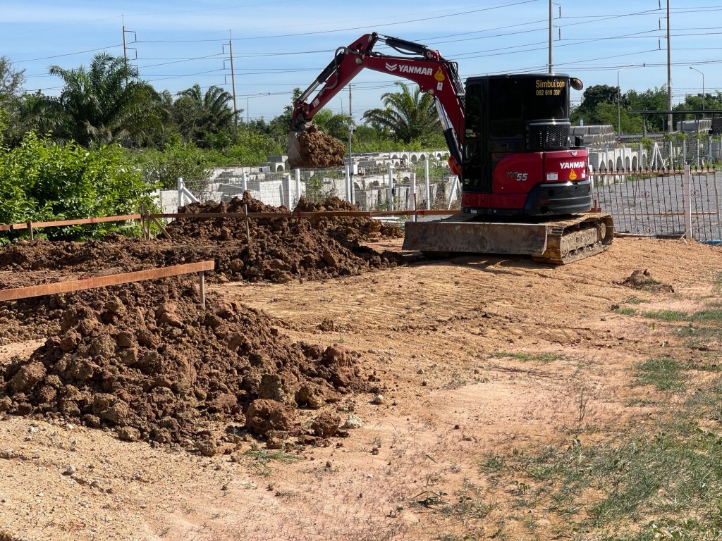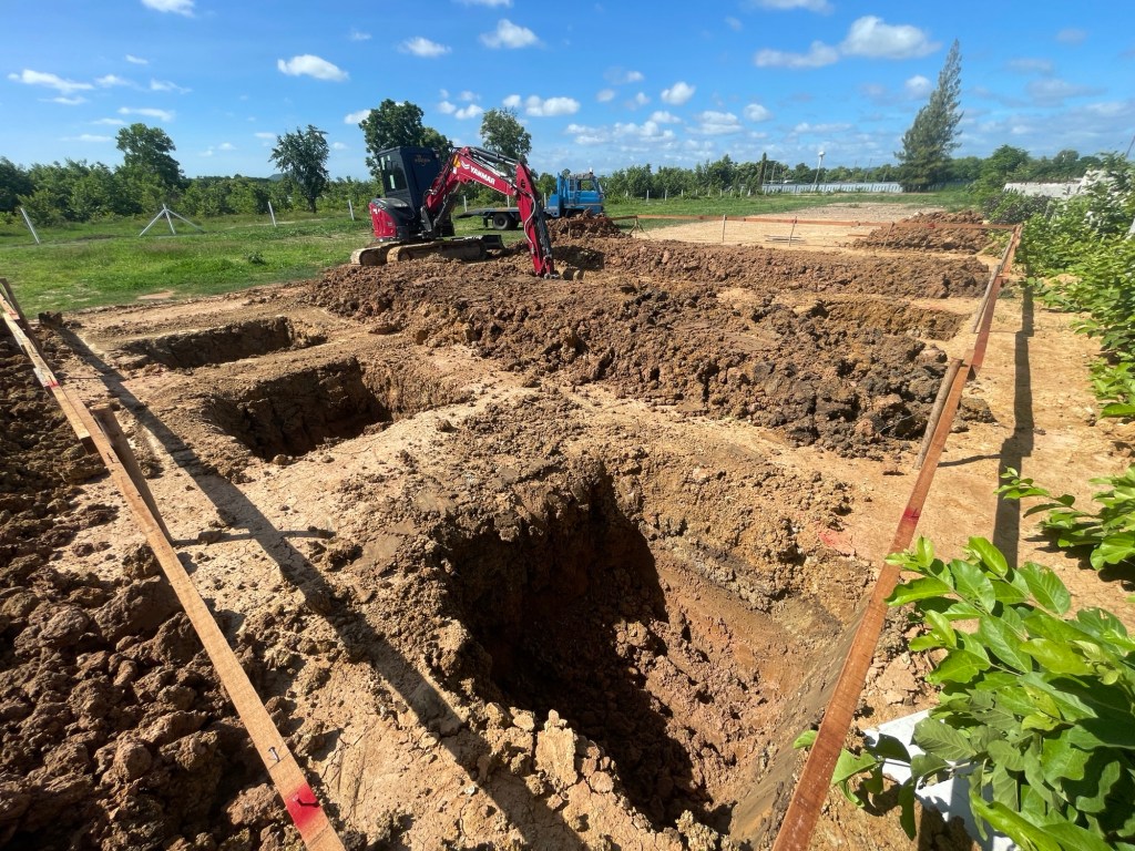 นำรถแมคโคร Vio55 เข้าขุดฟุตติ้ง 9 หลุม