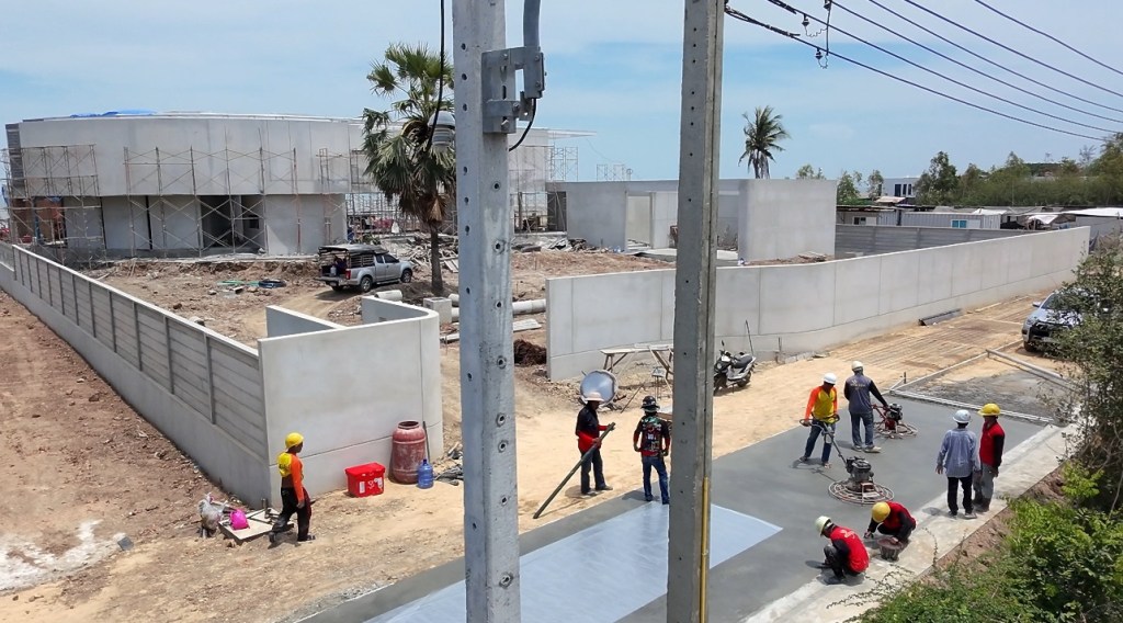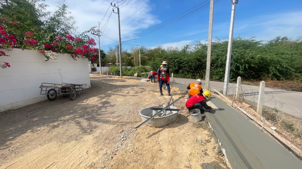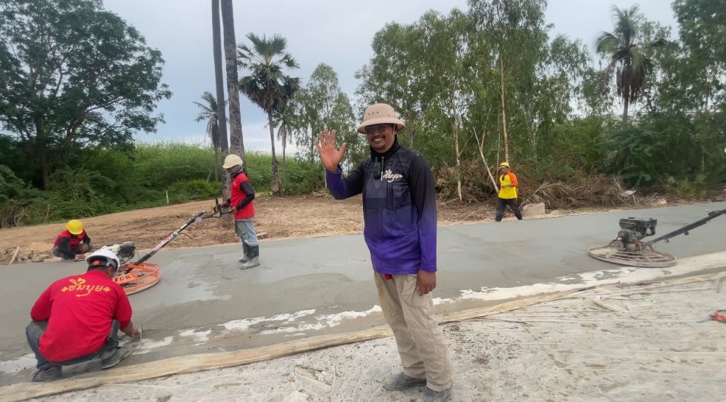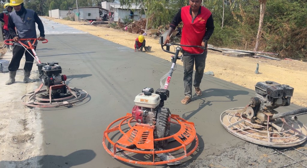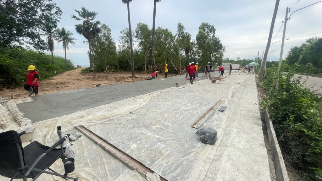 งานก่อสร้างถนนคอนกรีตขัดมัน พร้อมรางV วางท่อระบายน้ำ ความกว้างถนน8เมตร ความยาวถนน 270 เมตร @บางเก่า ต.บางเก่า อ.ชะอำ จ.เพชรบุรี ด้วยเครื่องจักรและทีมช่างเฉพาะทาง และวิศวะ พร้อมให้บริการ