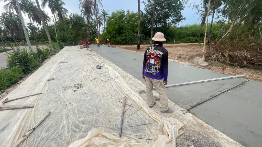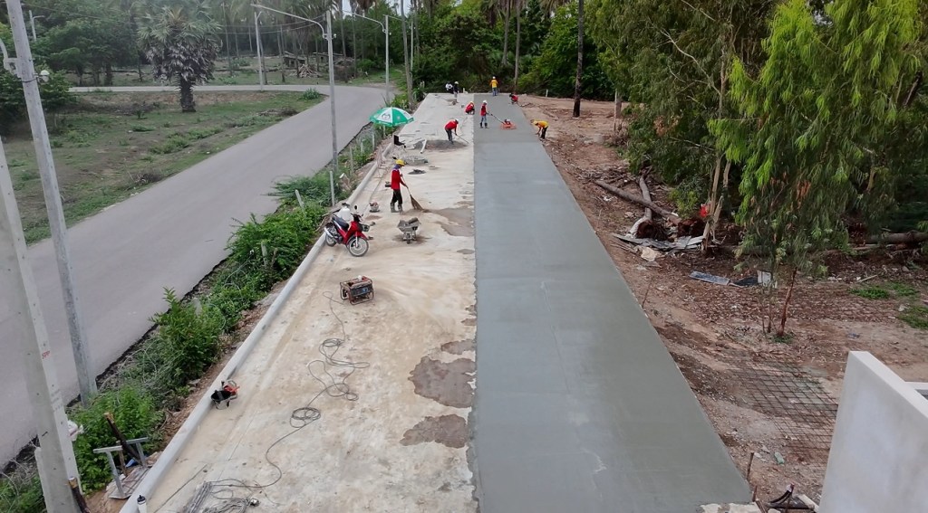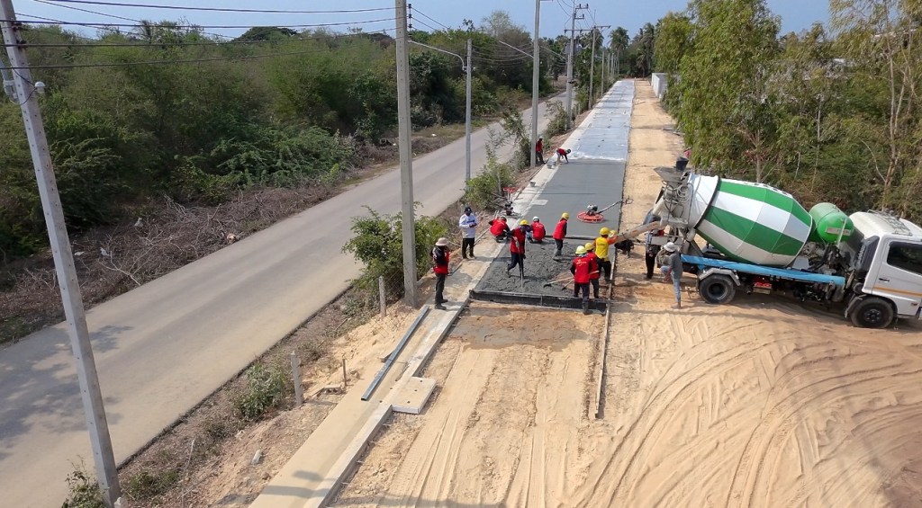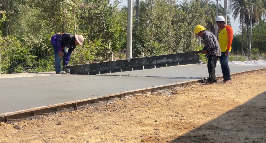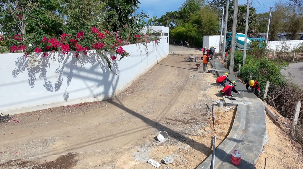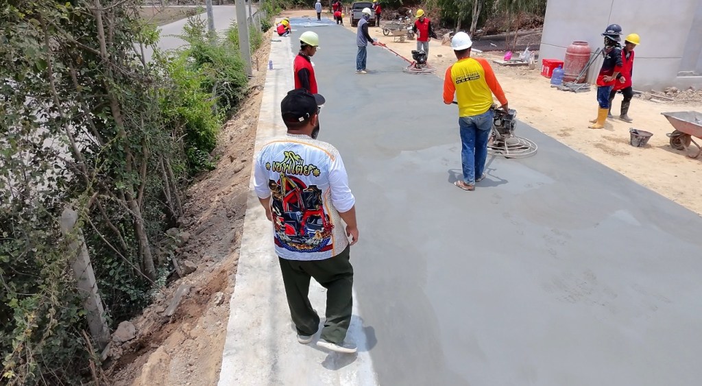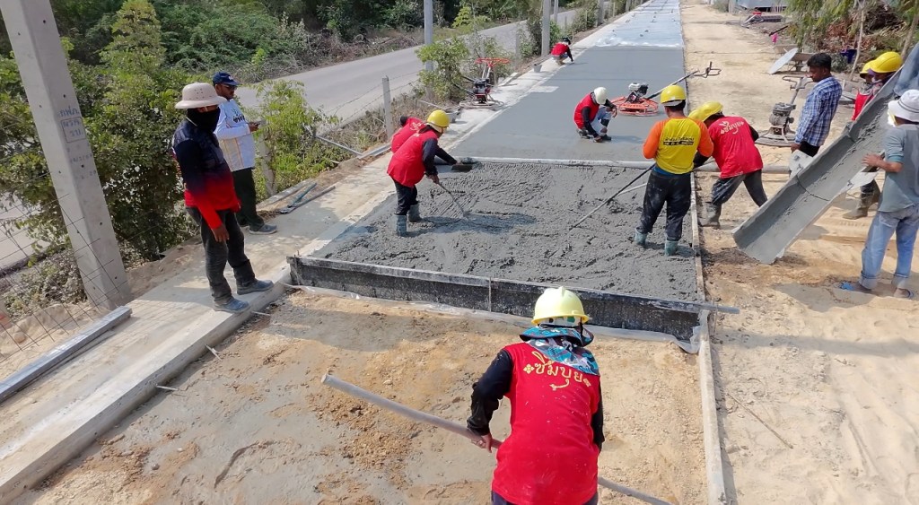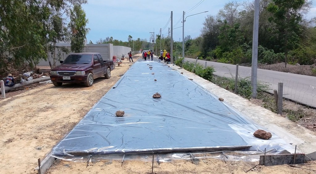 - ถนนคอนกรีต วางท่อระบายน้ำ ถนนลาดยาง