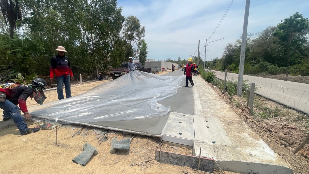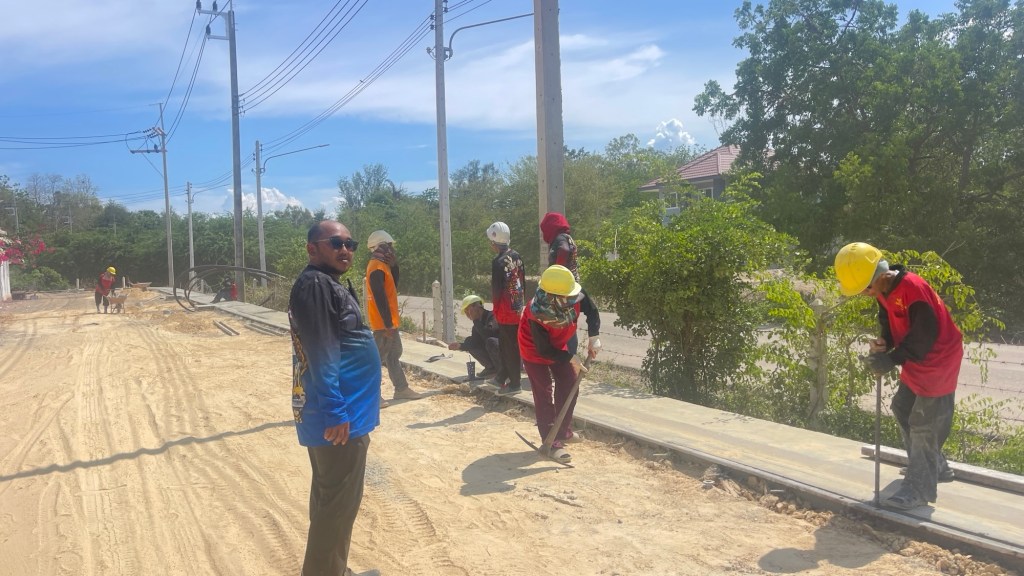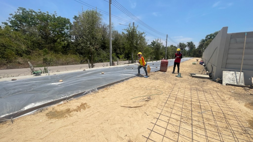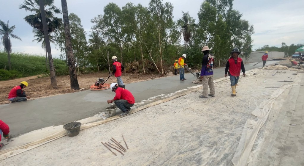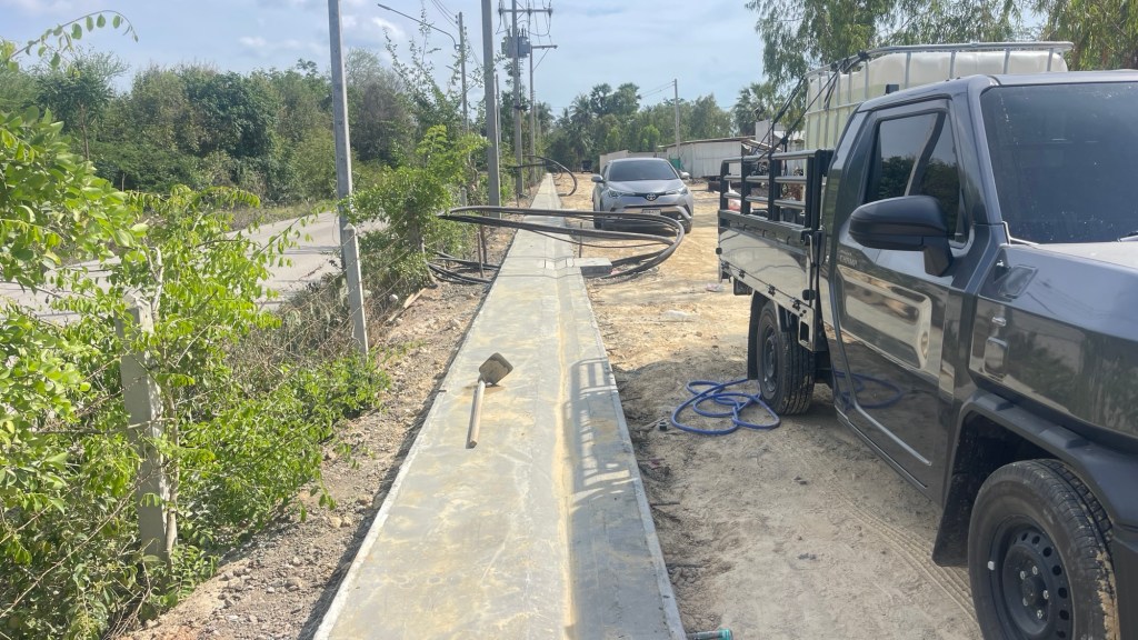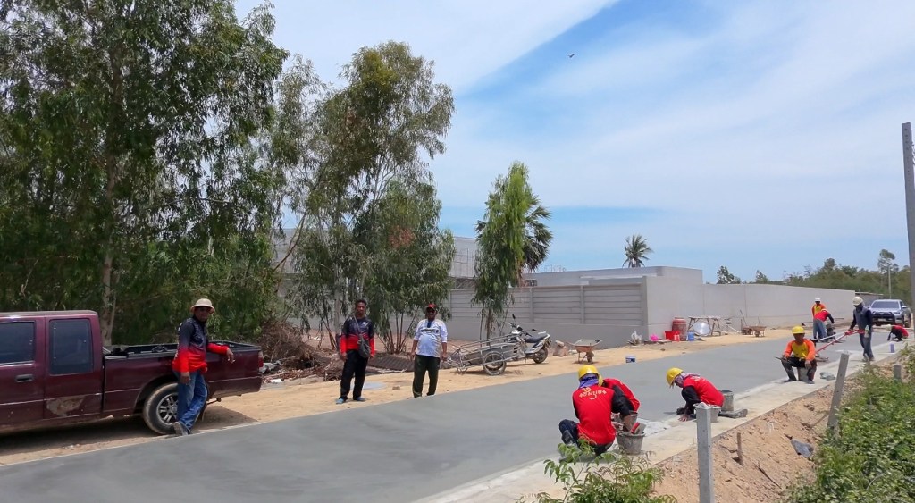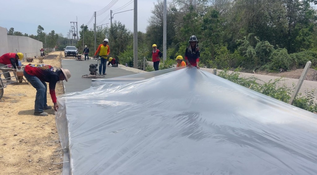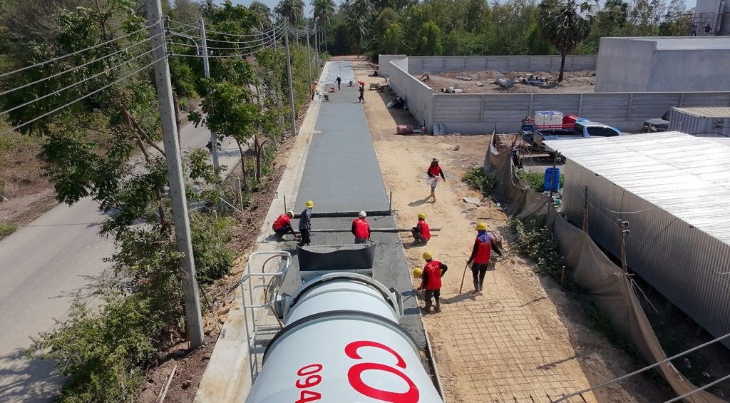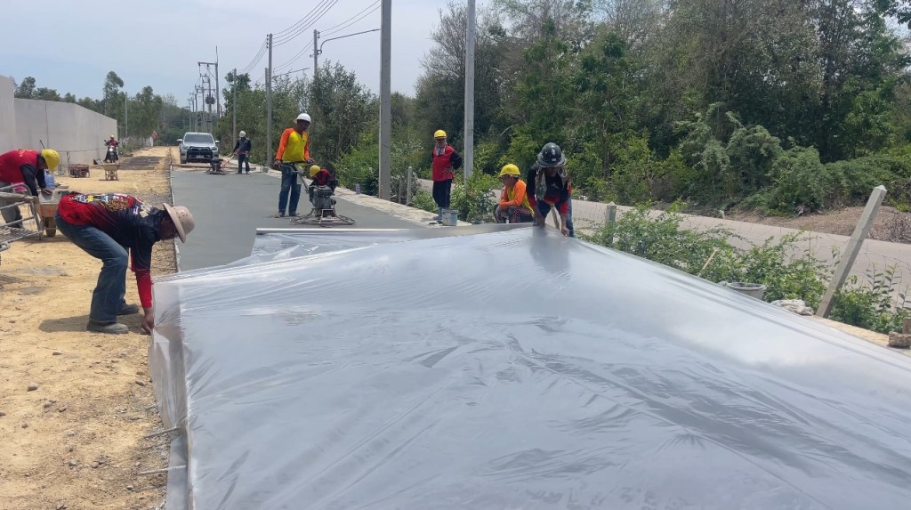 - ถนนคอนกรีต วางท่อระบายน้ำ ถนนลาดยาง